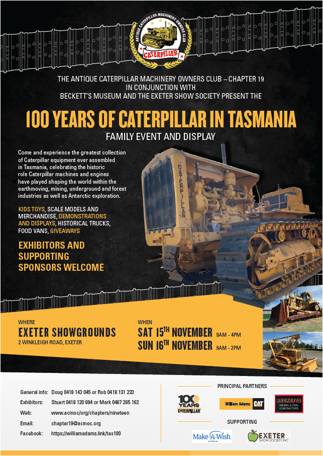 100 Years of Caterpillar in Tasmania Back to Launceston Events Advertisement Date Nov 15 2025 Expired! Time 9:00 am