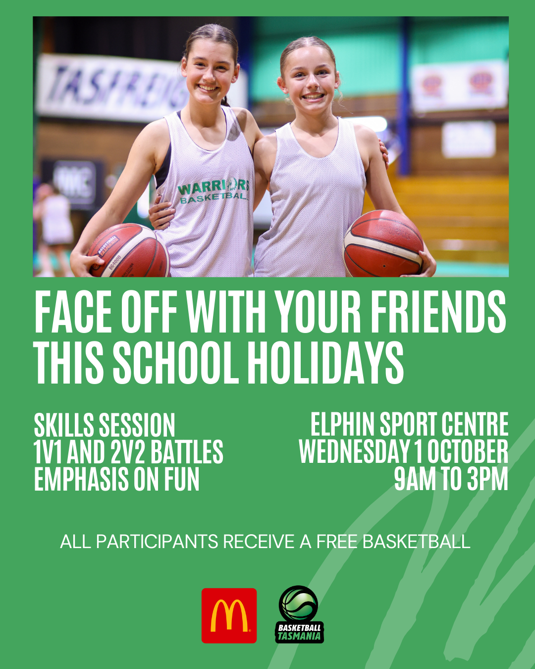 Basketball Tasmania and McDonald’s present this unique holiday camp, which flips the script — bring your friend along and team up in 2v2 games, then go head-to-head in 1v1 battles for bragging rights.