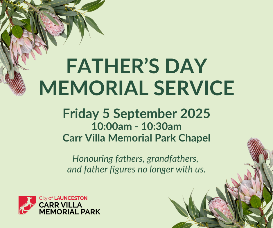 On Friday, 5 September at 10:00am, Carr Villa Memorial Park will host a Father’s Day Memorial Service in our Chapel, offering a gentle and supportive space to reflect and remember fathers, stepfathers, grandfathers, and father figures who are no longer with us.