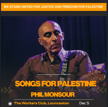 Join us for an unforgettable night of music, resistance, and solidarity. Phil Monsour’s powerful voice and uncompromising lyrics have become a soundtrack for justice echoing the hopes, heartbreaks, and resilience of Palestine. This isn’t just a concert. It’s a call to conscience.