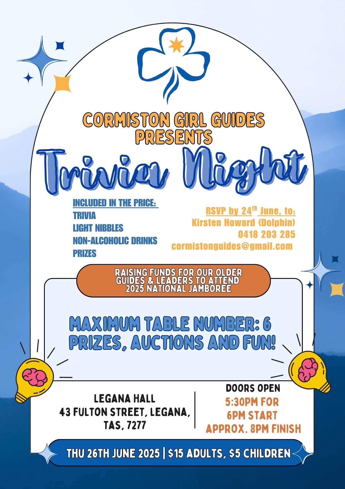 Come along to a fun Trivia Night for all! Fundraising to send our Guides to National Jamboree! ✈️🤩 2025