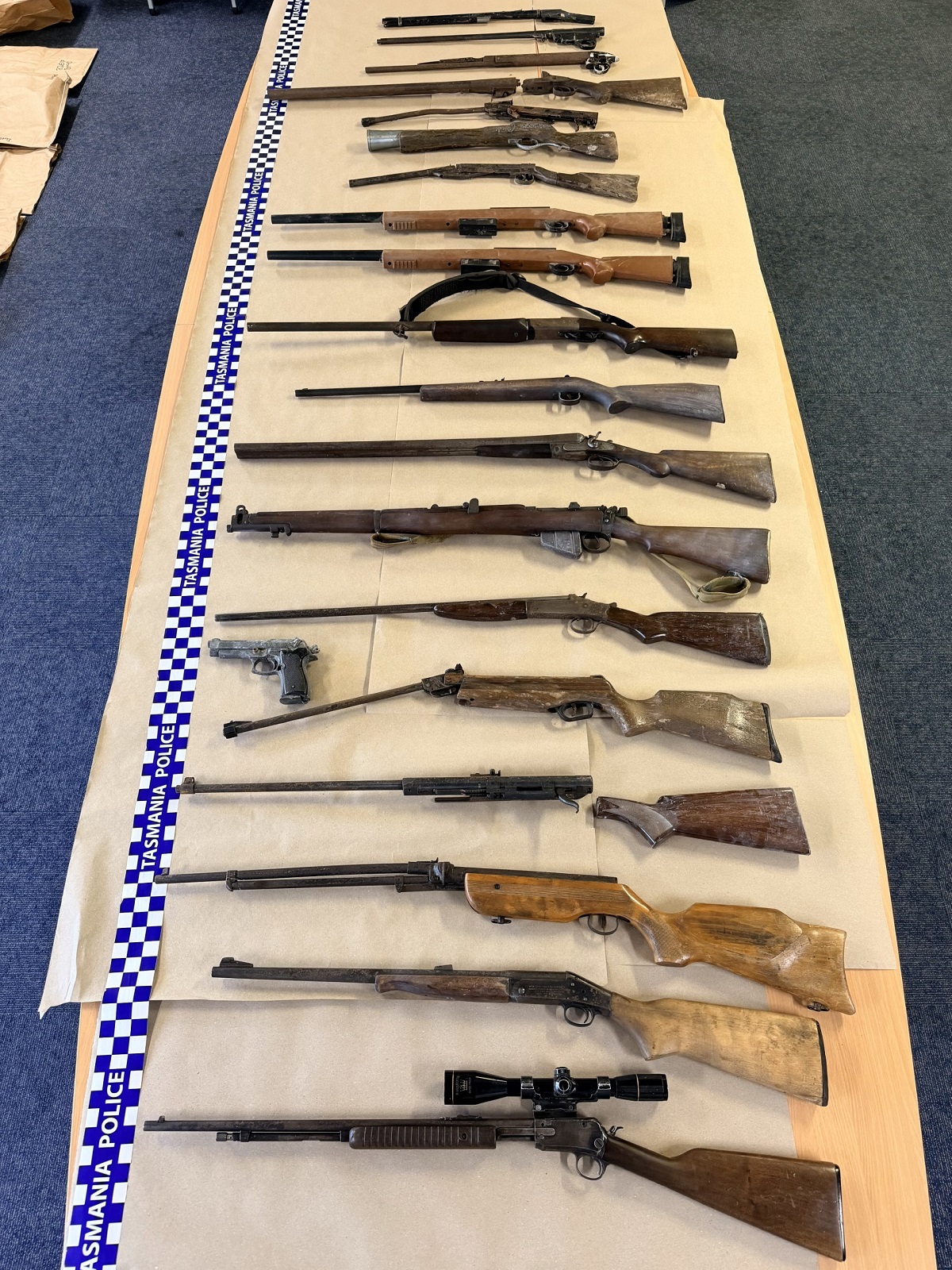 Police claim a property search located 17 firearms including rifles, shotguns and a .303 carbine during the search.